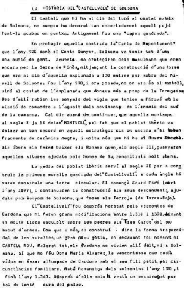 J'ai transcrit divers travaux de recherche culturelle de la région du Solsonés dans mes jeunes années.