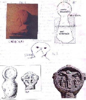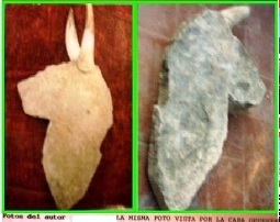 En consecuencia, años después yo me concentré en buscar más yacimientos megalíticos en la dirección N.W., y los encontré en el grupo de dólmenes de la comarca vecina del Alto Urgel. Más hacia el N.W., tuve una mayor recompensa al encontrarme los numerosos dólmenes de la comarca del Pallars Sobirá. En la pequeña localidad de Peramea, pueblo elevado muy por encima de la vecina Gerri de la Sal, descubrí dólmenes inéditos; y cerca de Betrui, incluso hallé una escultural "Cabeza de toro". Está esculpida con el mismo corte en la piedra que presento por ambas caras. A pesar de la profunda ranura en la piedra -que debía recortar su nuca-, aquella escultura nunca se acabó de cortar. En la siguiente foto se muestra el recorte deseado.