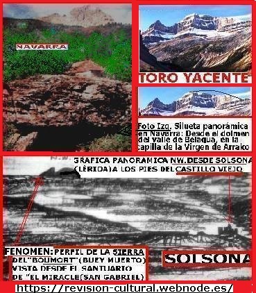 The megalithic Europeans's dolmen was bull image inspired from Mt. Montserrat in Catalonia. In the centre of Catalonia, the forest of Solsona country keep several bull's head sculptures, and other document about the first cradle of megalithic European bull-totem veneration.