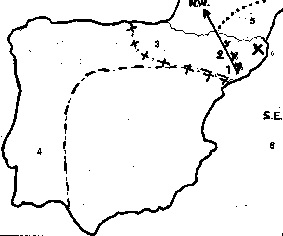 LA PROYECCIÓN HACIA N.W. NO PUDO ATRAVESAR LOS MONTES PIRINEOS